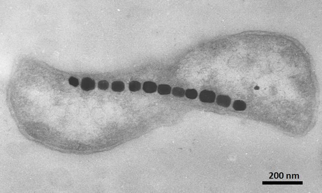 In risposta ai primi due quesiti è stato mostrato come, a livello mineralogico, i cristalli prodotti dai batteri magnetotattici assumano una morfologia esaottaedrica tronca, invece di una esaottaedrica tipica della magnetite inorganica (abiotica).