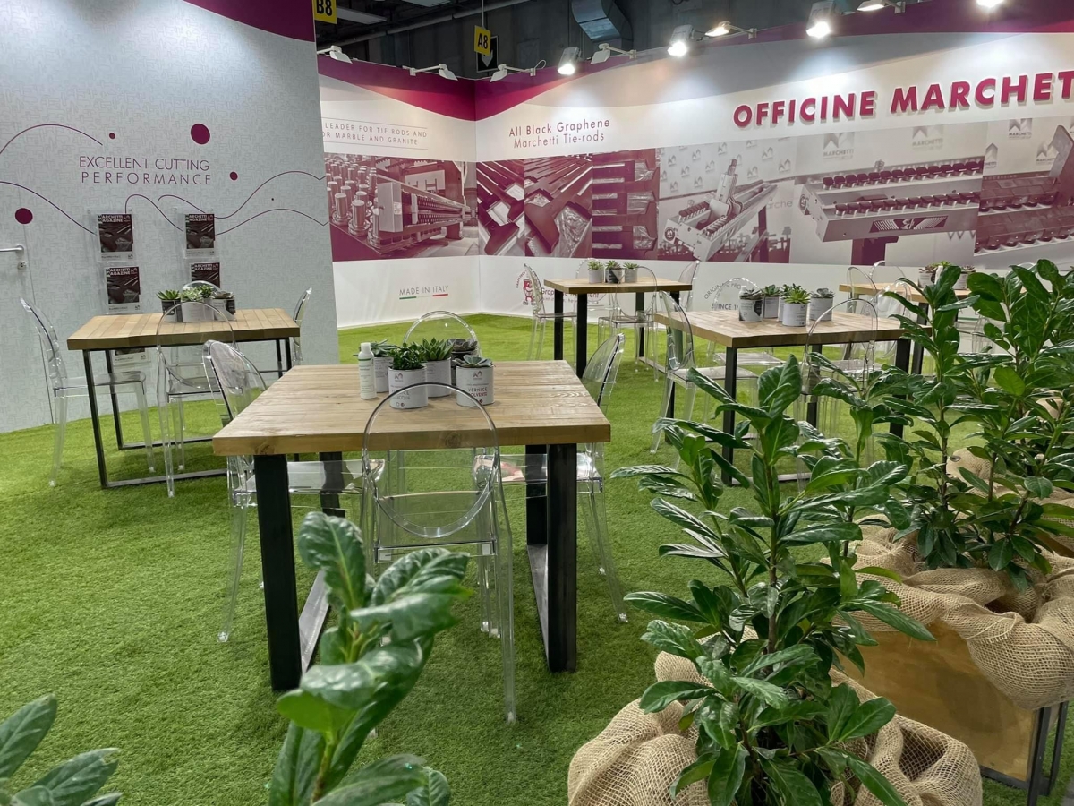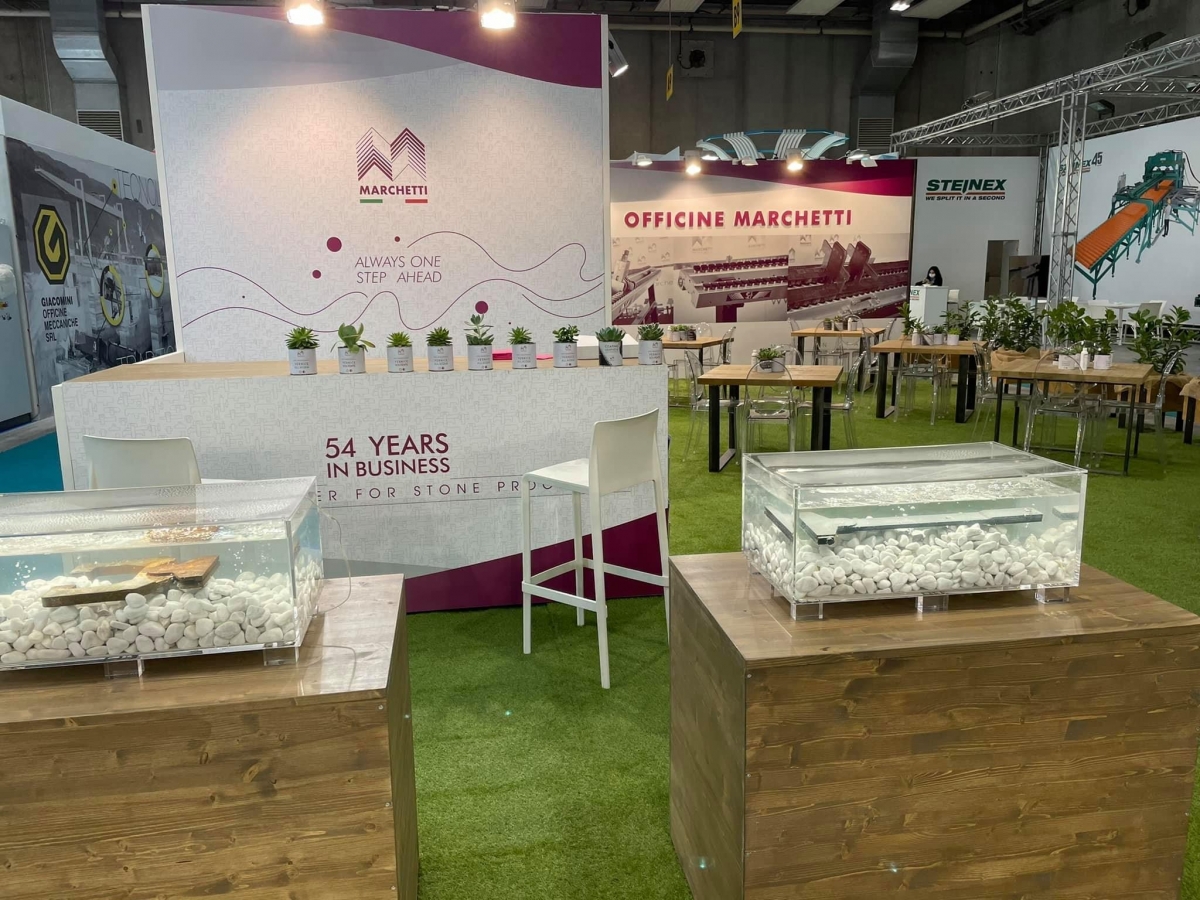 Durante la Fiera saranno spiegati i nuovi tenditori che permettono di fare dei tagli di 8 mm, per realizzare delle lastre sottili e sempre più sostenibili, Officine Marchetti suggerisce l'utilizzo della pietra naturale in modo tale che abbiamo un utilizzo sempre più adatto a progetti che rispettano la sostenibilità. Il palinsesto della fiera è già ricco di eventi e conferenze, oltre che valorizzato dalla presenza di altre aziende che puntano proprio a questo evento per fare ripartire il settore. Officine Marchetti partecipa alla fiera per dare appuntamento a tutto il suo network di service point che riesce a servire ben 90 paesi nel mondo.
