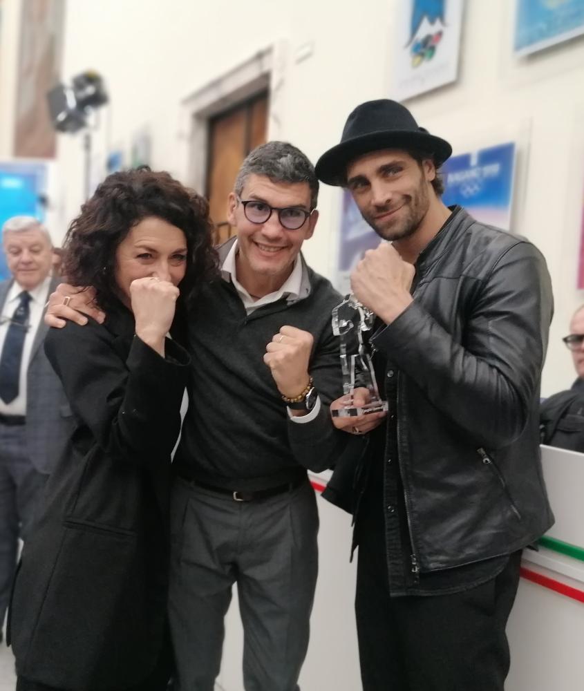 In ricordo di uno straordinario Campione di Sport e di Vita e amico del pugilato, il Premio Giuliano Gemma, giunto alla sesta edizione e destinato ai personaggi che hanno diffuso i valori della noble art attraverso il cinema e l’arte, è stato consegnato da Baba Richerme, moglie di Gemma, giornalista e critico cinematografico. L’ambito premio, riproduzione de “Il Pugile” in bronzo dell’artista Gemma, è stato conferito all’attrice, regista e produttrice Lidia Vitale, interprete poliedrica anche nel film “Ghiaccio” sulla boxe di Alessio De Leonardis e Fabrizio Moro; all’attore, sceneggiatore e conduttore Fabio Troiano, in sala con Jastimari – Il Rifugio di Gabriele Cannella e padre di Paolo (Gabriele Di Bello) ragazzo pugile nel film “Upside Down” di Luca Tornatore; all’attore, cantautore e sportivo Mario Ermito, protagonista del musical “Rocky’’ di Luciano Mattia Cannito; e al Campionissimo e attore Patrizio Oliva, che attraverso lo spettacolo teatrale “Patrizio vs Oliva” di Alfondo Postiglione, è riuscito a diffondere un messaggio di speranza ai giovani con il mantra salvifico che è simbolo di rinascita.