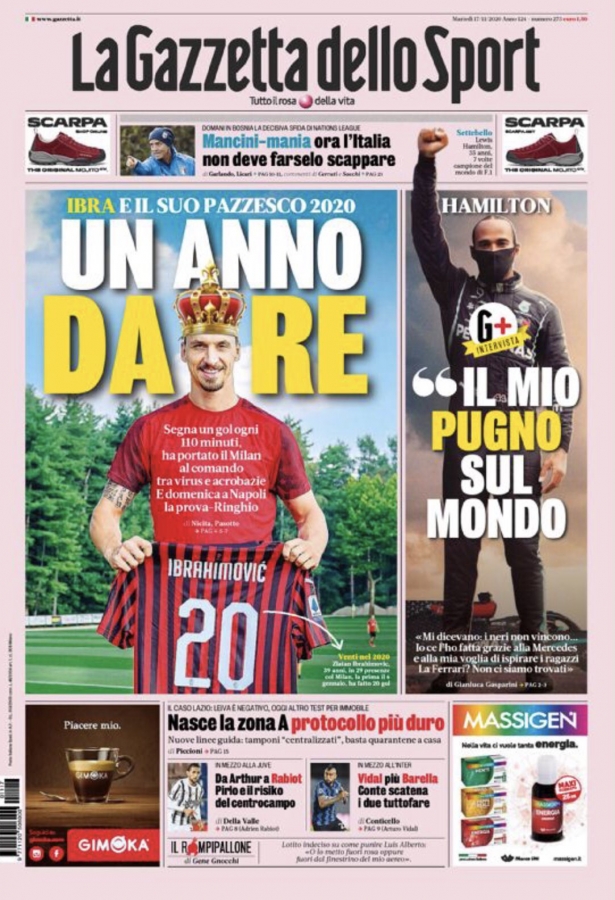 "Un anno da Re", Ibra ed il suo pazzesco 2020 l'apertura della rosea di stamane.