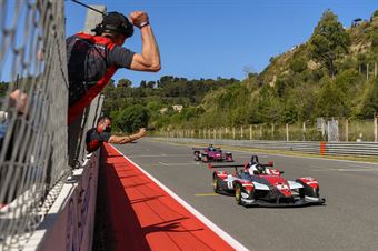 Giacomo Pollini riesce in una rimonta pazzesca prima attaccando Baiguera e poi superando subito dopo anche Uboldi con grande autorevolezza. Il caldo e la tecnicità del circuito siculo mettono in difficoltà vetture e piloti così Francesco La Mazza, Rocco Mazzola e Giuseppe Terminesoprattutto anche il vincitore di Gara 1 Matteo Pollino è costretto al ritiro, esattamente come accaduto in gara 2 a Monza. Incidente dal grande impatto con Steve Brooks che demolisce letteralmente la sua Wolf GB08 Thunder contro le barriere provocando l’ingresso della safety car che congela la gara consegnando la vittoria a Lazzaroni.