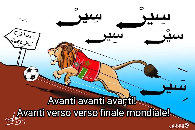 "We are all Moroccans" (Siamo tutti marocchini): questo il titolo della prima pagina di Jerusalem Post, il principale quotidiano israeliano in lingua inglese, questo mercoledì 14 dicembre 2022. Una copertina con una foto della nazionale marocchina, la testata israeliana riporta il famoso "Siiiir!", in arabo, e la sua traduzione in inglese (Goooo!) cioè vai a fare Goal.