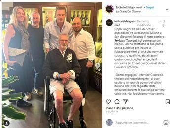 "Siamo orgogliosi - riferisce Giuseppe, titolare del ristorante - di aver ospitato un grande uomo del calcio italiano che ci ha regalato tante emozioni durante la sua lunga carriera calcistica. Noi lo abbiamo visto sereno e felice con la sua famiglia e amici nel gustarsi una piacevole serata tra tante eccellenze gastronomiche…". Subito dopo la cena Tacconi è rientrato nella sua stanza dell'Ospedale di Padre Pio per proseguire il suo percorso riabilitativo, si legge ancora nel post del ristorante.Â