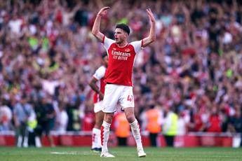 L'Arsenal batte 3-1 il Manchester United nel big match della quarta giornata della Premier League, oggi 3 settembre 2023. I gunners, sotto per il gol di Rashford al 27', pareggiano subito con Odegaard al 28'. In pieno recupero, i londinesi si aggiudicano la sfida con le reti di Rice al 96' e Gabriel Jesus al 101'.Â