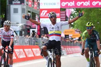 L'ecuadoriano Jhonatan Narváez si impone sul traguardo di Torino in volata sul favorito Tadej Pogacar e Maximilian Schachmann, nella prima tappa del Giro d'Italia 2024 partita da Venaria Reale, con arrivo a Torino dopo 140 chilometri e la salita sul Colle della Maddalena. Il corridore della Ineos-Grenadiers è la prima maglia rosa del Giro.Â