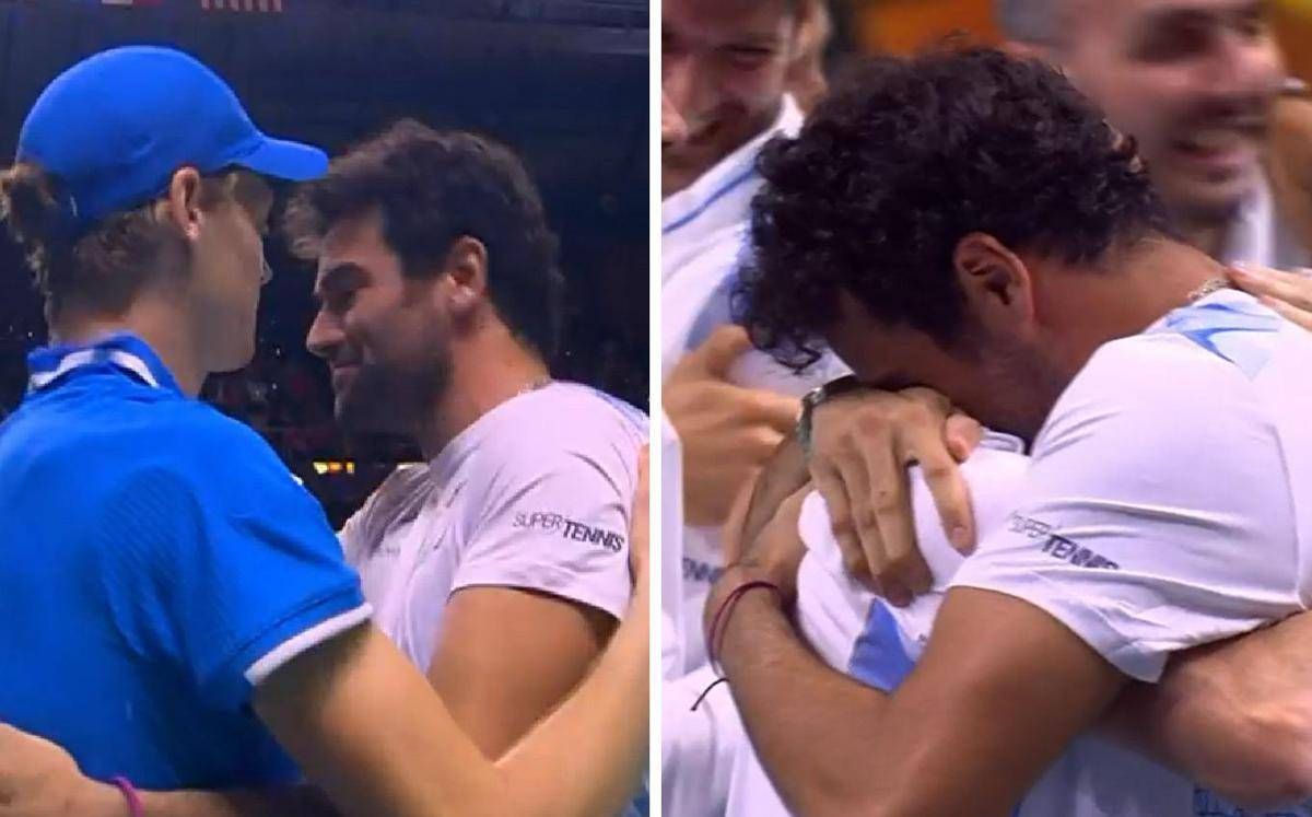L'Italia vince la Coppa Davis, Matteo Berrettini abbraccia Jannik Sinner e non trattiene le lacrime. Il trionfo in finale contro l'Olanda per 2-0 dà inizio alla festa azzurra a Malaga. Berrettini, protagonista assoluto del successo con la vittoria nel primo singolare, è il più emozionato nel gruppo tricolore. Il tennista romano si gode la vittoria che sancisce la sua rinascita dopo un lungo periodo condizionato dagli infortuni.Â