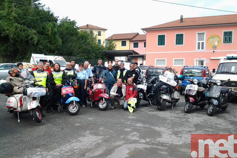 Il grande giorno è arrivato. Sarà tutto pronto? Non abbiamo dimenticato nulla? Rivedi tutto. Escludi. Includi. Dubbi. No, c'è tutto. Sveglia alle 5, solite cose e poi si Carica la vespa. 30 kg tra bagagli, ricambi, olio e attrezzatura varia. Calibra bene i pesi. 5 kg anteriormente, 10 in centro e altri 5 posteriormente. Benzina c'è, olio anche. Navigatore, telecamera, tablet, tecnologie, tutto ok. Stanno arrivando Carlo Domenico e Giuseppe. Prova caschi arrivati ieri sera alle 18. Bene anche questi. Adesivi sulle fiancate e sul parafango. Si parte per il luogo della partenza. Via Duomo. Ci aspettano gli amici del Vespa Club Biella e del Moto Club Perazzone insieme ad Andrea del Caffettino che hano preparato la partenza. Qualche problema con i vigili per i permessi ma tutto si aggiusta. Arriva anche don Gariazzo che benedice le Vespa e il sindaco per dare il via al giro. Vi è anche il consigliere Posillipo del Comune di Santhia che tantissimo ha fatto per il nostro arrivo del 6 ottobre. Siamo oltre 100. Con noi anche Mariela, mamma di Leonardo, il bimbo autistico che è diventato la nostra mascotte, con la sua ETS 125 e Corrado, del Vespa Club di Chivasso che ci seguirà con un furgone per le prime 4 tappe. Breve giro per le vie cittadine e poi verso Candelo. In piazza Castello ci attende La vicesindaco e l'amica assessore alle politiche sociali. Il gruppone comincia a disgregarsi vista l'ora di pranzo, ma noi abbiamo la sosta più importante: La Casa per l'Autismo. Il nostro obbiettivo ed il fine principale dei nostri viaggi. Una bellissima sorpresa, la casa è quasi terminata. Fra una settimana l'inaugurazione. Ora bisogna trovare i fondi per mantenerla e per le terapie di 40 soggetti giornalmente.