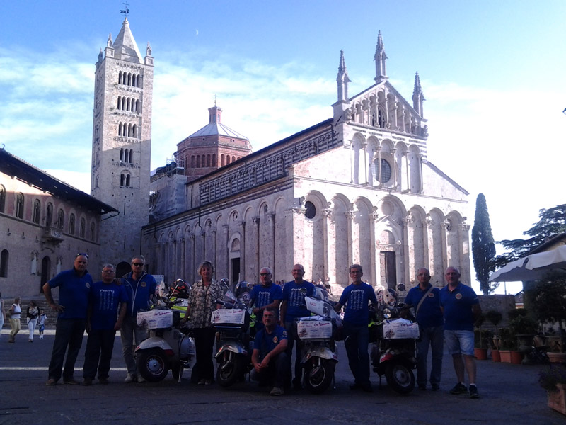 Per la strada due fidanzatini ci fermano e ci chiedono spiegazioni. Ci fotografano. Ci conoscono. Sostiamo a Volterra dove molti turisti fotografano le nostre vespe e alcuni ci riconoscono perché hanno letto i giornali. Anche un vigile urbano ci lascia parcheggiare sul... marciapiede.