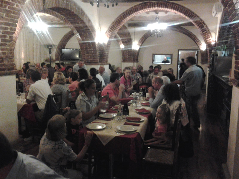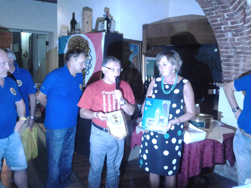 Siamo seduti al tavolo del consiglio insieme alla sig.ra sindaco. È piacevolissimo chiacchierare con lei. Cena semplice ma ottima. Nel frattempo altra meraviglia. Mi raggjunge Marco, un amico di Biella in vacanza nei dintorni. I titolari del ristorante ci regalano un libro di racconti sui bambini fatto per i genitori. Si parla anche di autismo. Il libro viene messo in vendita e anche qui ci viene offerto il ricavato. La cena termina con i nostri ringraziamenti e con l'intervento del sindaco e del Vespa Club.