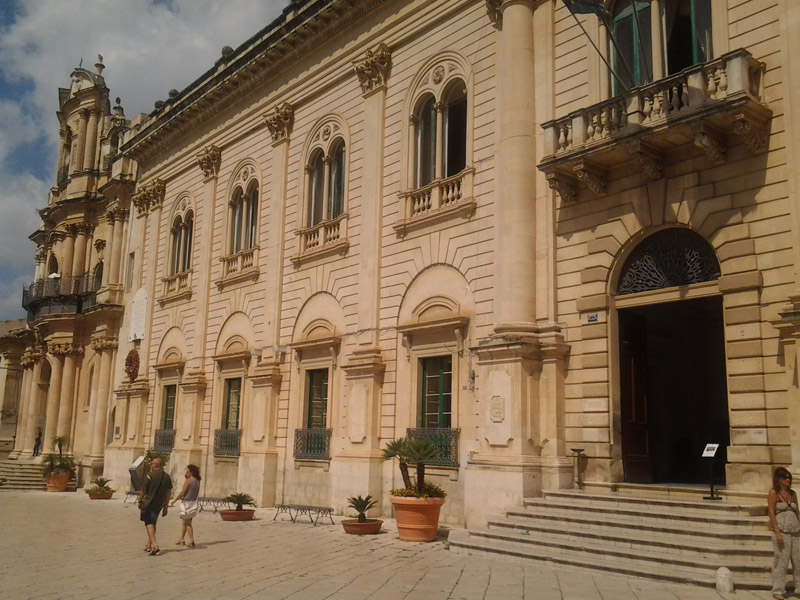 Ripartiamo per Agrigento attraversando alcuni luoghi del commissario Montalbano. Il 'commissariato' che è il comune di Scicli e la casa sul mare. Pranziamo lì, sul mare. Carlo riesce finalmente a fare il bagno. Non fa molto caldo. In vespa dobbiamo coprirci.