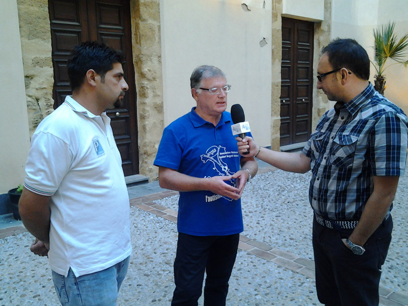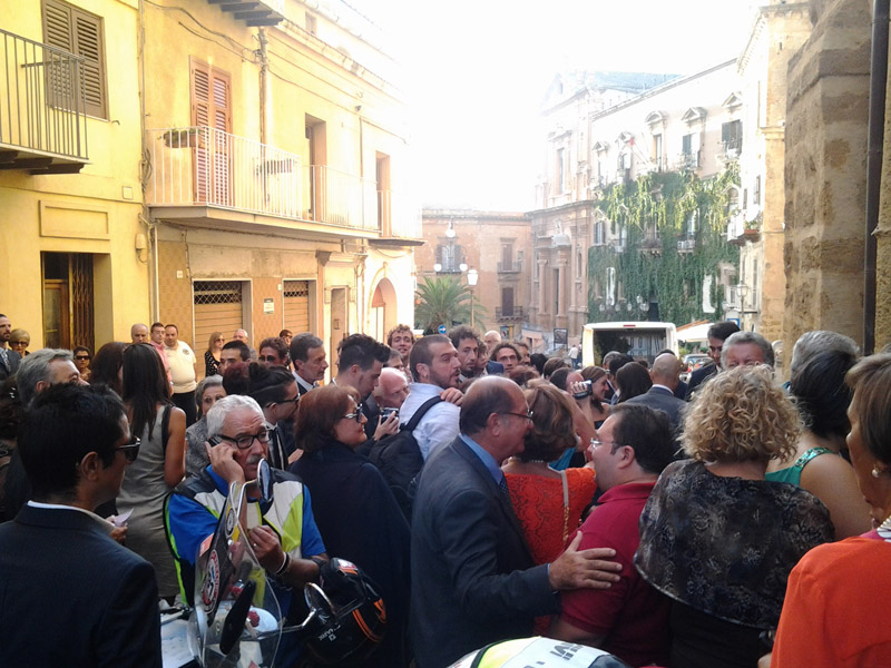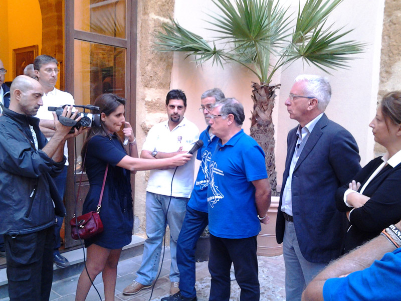 Arriviamo abbastanza puntuali. Il presidente del Vespa Club La Vespella di Agrigento ci accoglie e ci accompagna prima alla nostra sistemazione per la notte e poi in municipio dove ci attende una conferenza stampa e... un bagno di folla. Incredibile. Televisioni locali e giornalisti ci intervistano a lungo.