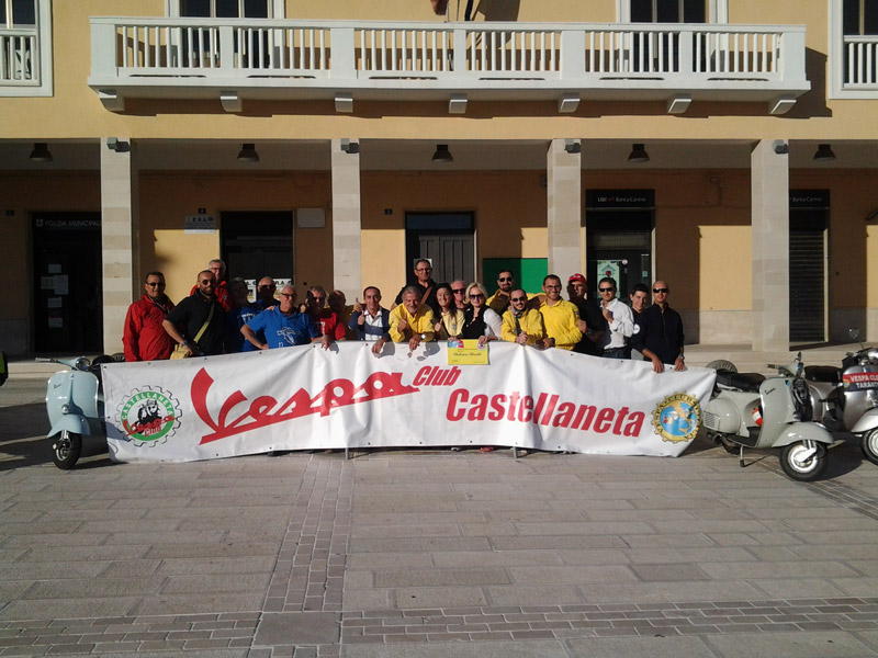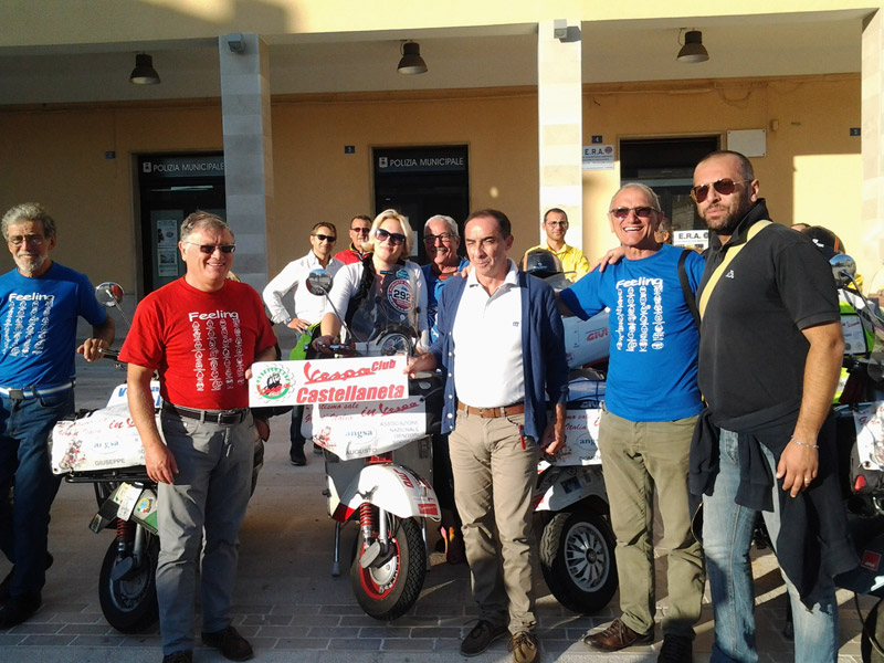 Ci accompagnano gli amici del Vespa Club che fanno anche intervenire un appassionato di storia locale. Ci racconta molte curiosità tra i vicoli piuttosto fatiscenti, ma affascinanti e particolari. Alle 12 siamo in Municipio dove, in una stanza curiosamente affrescata ci viene consegnata una targa del peso di due chili che, da qualche parte, sistemeremo.