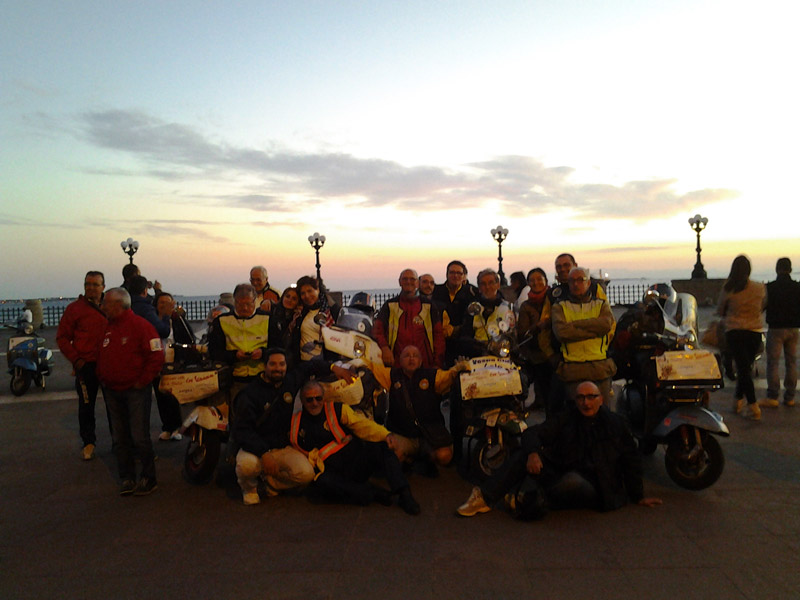 Arrivano anche da Martina Franca e, insieme, raggiungiamo Taranto dove sul lungomare vi sono almeno 50 vespisti ad attenderci. Come sempre molta curiosità , molte domande.