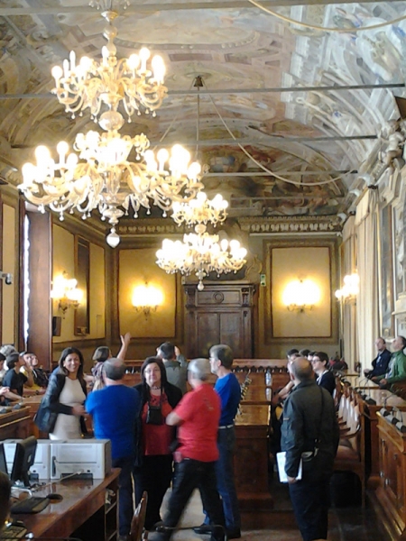 Siamo attesi in Municipio dalla vicepresidente del consiglio comunale. Una donna bellissima e molto preparata sulla storia della città . Ci fa anche visitare la sede comunale che ci stupisce per le sue particolarità . Bisogna assolutamente ritornare con calma.